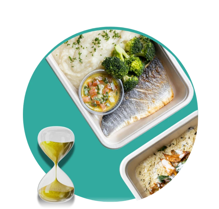Caring for the planet is at the heart of what we do. Our meal trays are made from bagasse, a natural compostable material that uses less plastic than standard trays. We also offer a free return system for our packaging and insulation, allowing us to clean and reuse them. Plus, each meal is pre-portioned and cooked to order, helping us eliminate food waste from the start.
