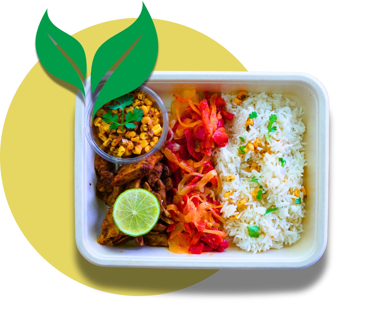 Caring for the planet is at the heart of what we do. Our meal trays are made from bagasse, a natural compostable material that uses less plastic than standard trays. We also offer a free return system for our packaging and insulation, allowing us to clean and reuse them. Plus, each meal is pre-portioned and cooked to order, helping us eliminate food waste from the start.